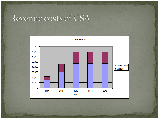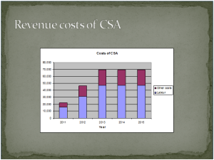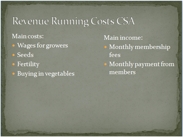 The plan is to grow for 50 households (shares) in the first year, then increase to 100 households in year two, then again up to a maximum of about 120-150 households in year three or four.