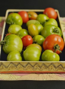 Hello! Because of the need to bring the tomato season to a close, we will all be receiving green tomatoes in our veg share this week. To help us deal with this sudden glut of the green stuff, Sims Hill member Naomi Woodspring provides us with the following recipes. Enjoy!